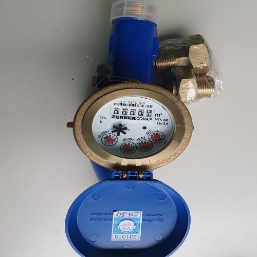 Đồng hồ lưu lượng nước Zenner DN25 MTK MNK kiểu đa tia, cấp B thân đồng Sơn Epoxy. Hàng Zenner Coma China Qn=3,5m3/h. Dùng đo nước sạch cấp chính xác B. Mặt hiển thị 5 số